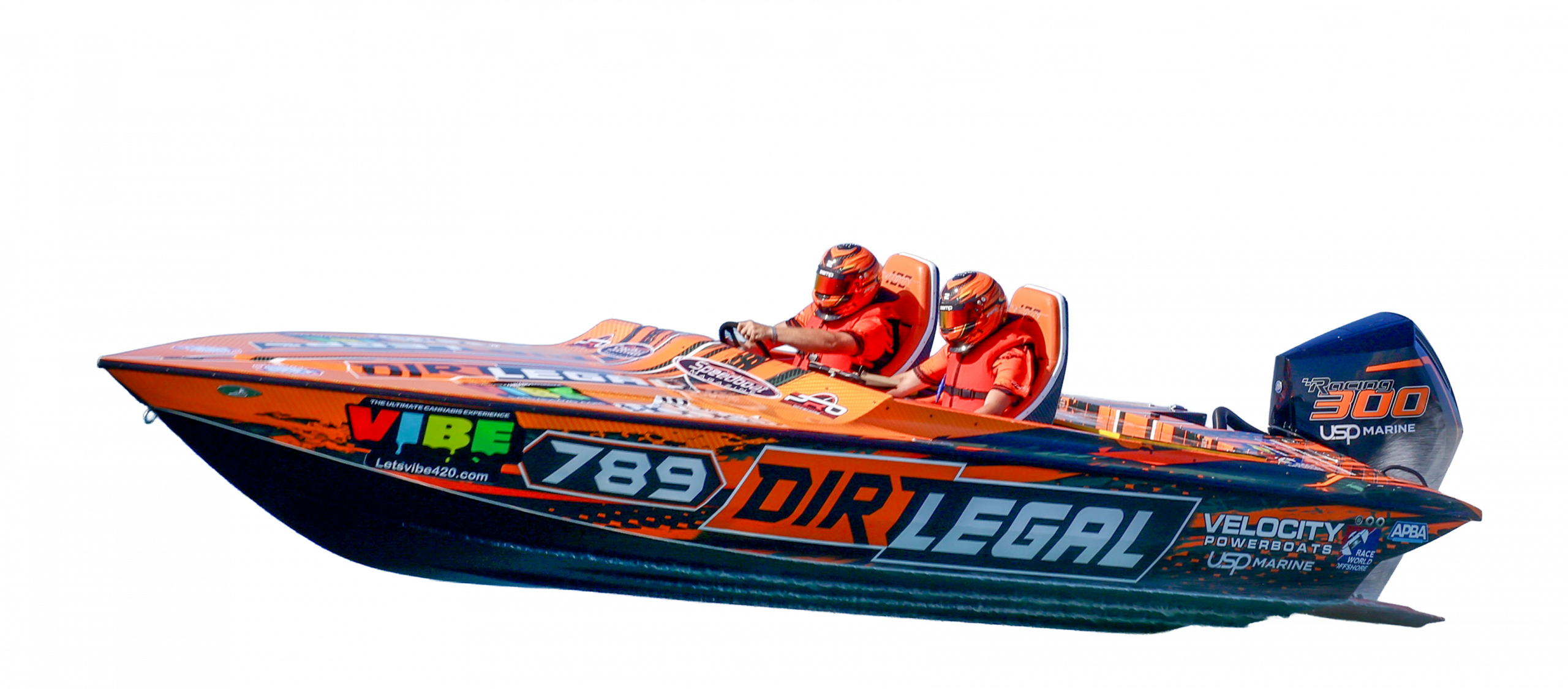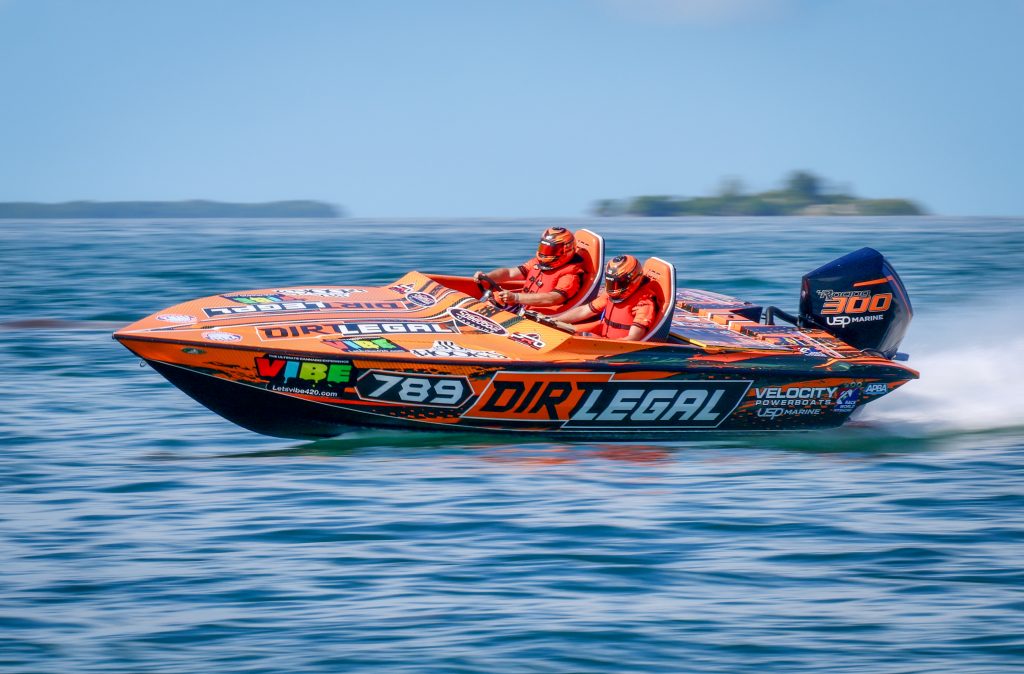 Team Dirt Legal is a championship-winning offshore powerboat team racing a Velocity Punisher 22 built from carbon-fiber and composite materials for serious performance in Class 700 / Class 7.